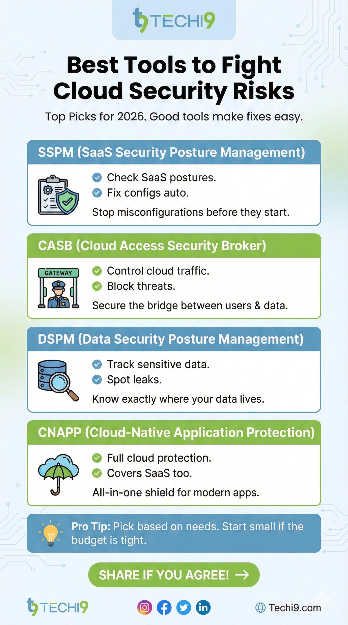 - SSPM tools: Check SaaS postures. Fix configs auto.